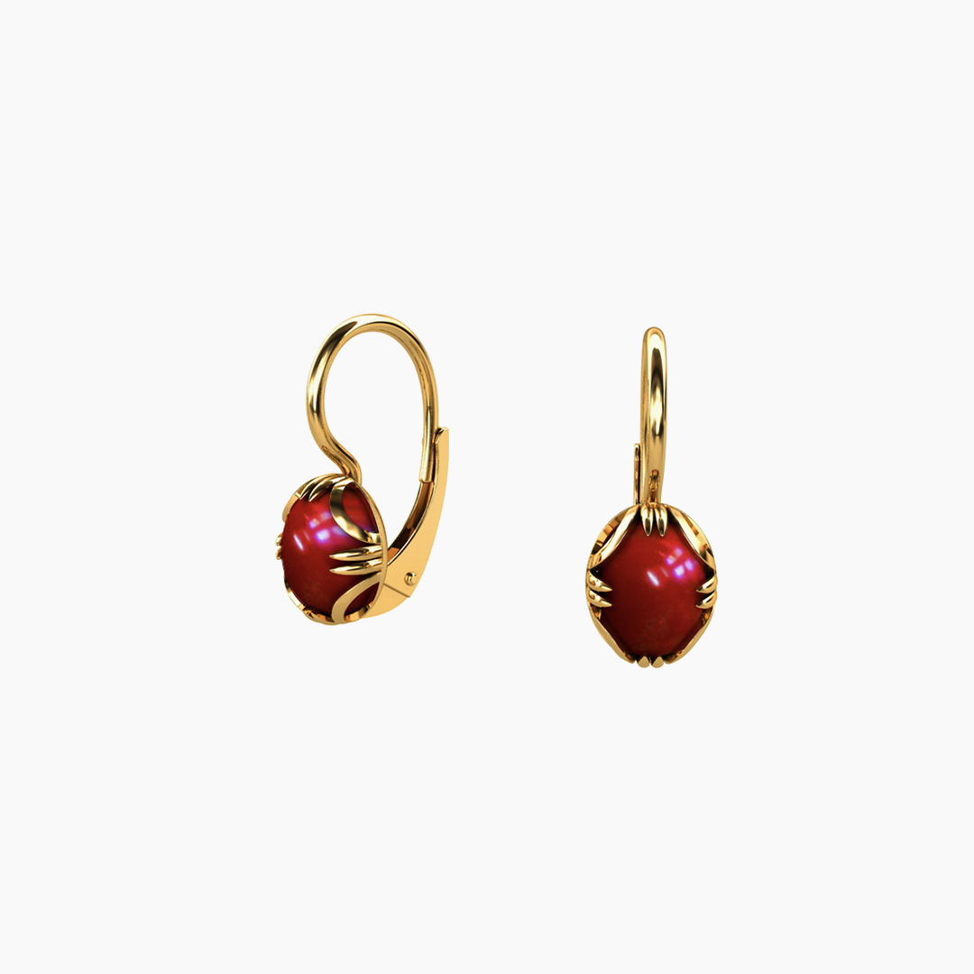 Kolczyki złote pr. 585 z Koralem o wymiarach 6 mm x 8 mm