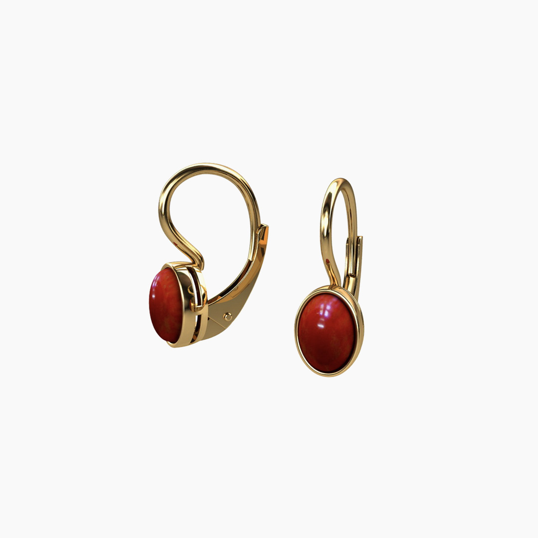 Kolczyki złote pr. 585 z Koralem o wymiarach 5 mm x 7 mm
